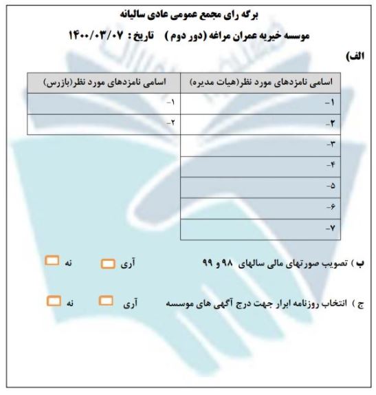 اعضای محترم وگرامی موسسه خیریه عمران مراغه.